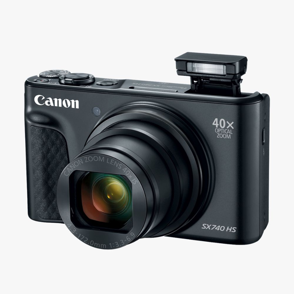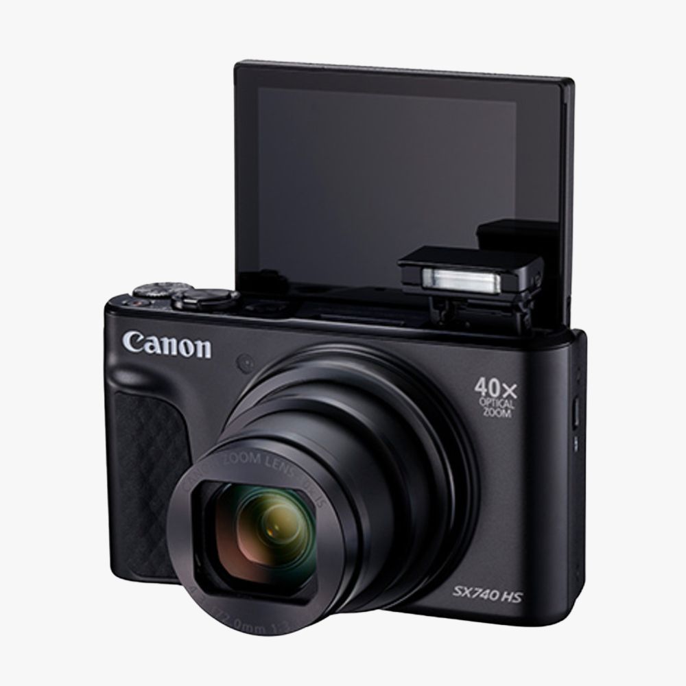 The Canon PowerShot SX740 HS (Black), a compact and versatile digital camera designed for travel, casual photography, and vlogging.